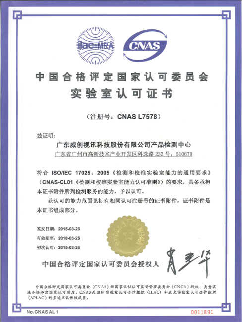 国家CNAS实验室认可证书